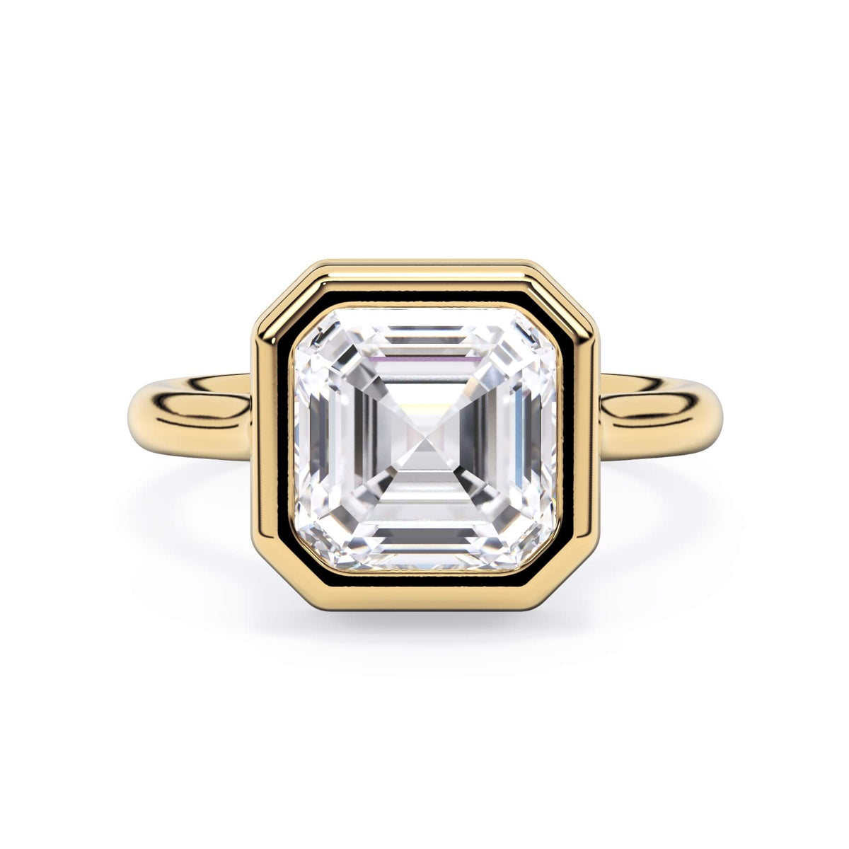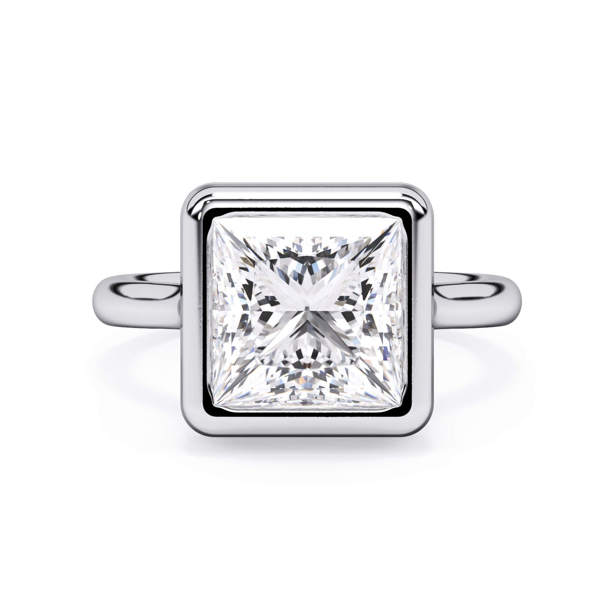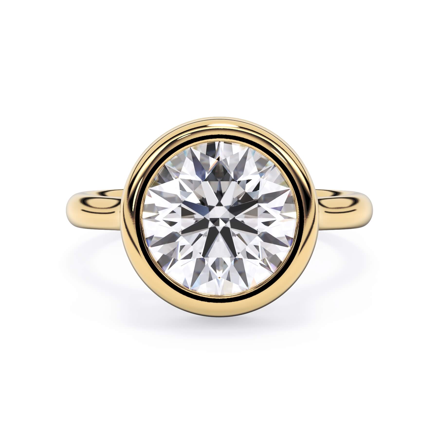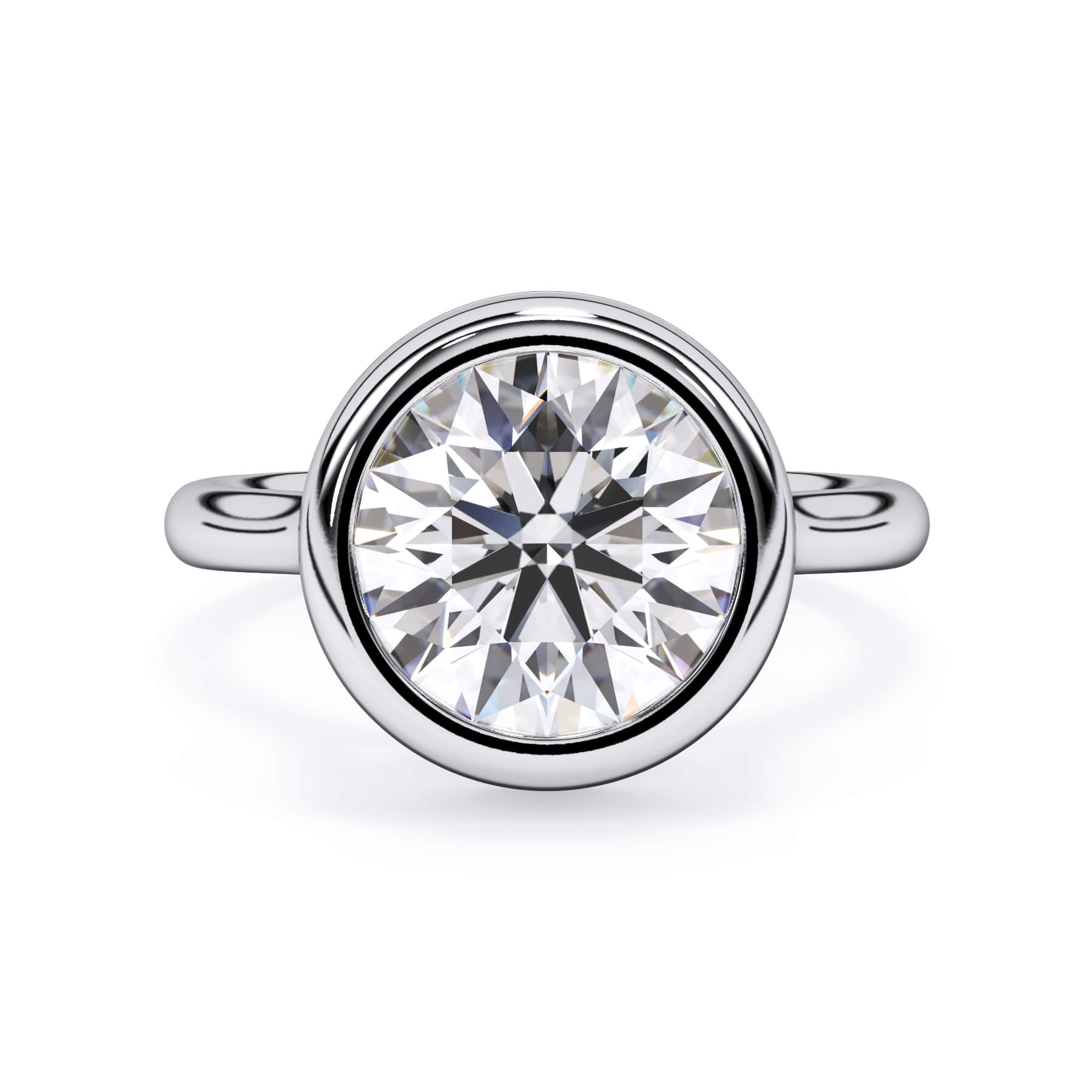 From the top down, this ring looks like a classic bezel set solitaire engagement ring, however the hidden halo underneath gives a fantastic flash and sparkle with diamonds. This Bezel with Underhalo Engagement Ring comes in your choice of 14kt Gold, 18kt Gold, or Platinum.