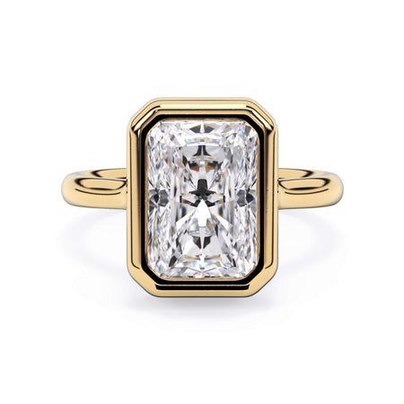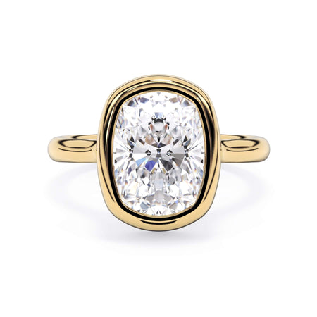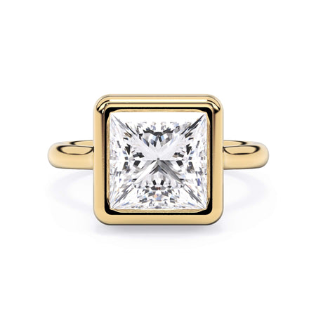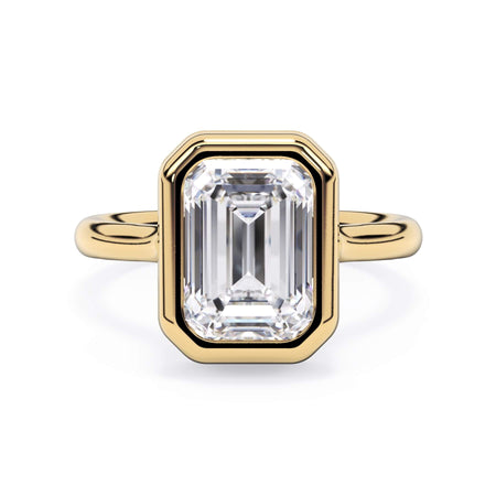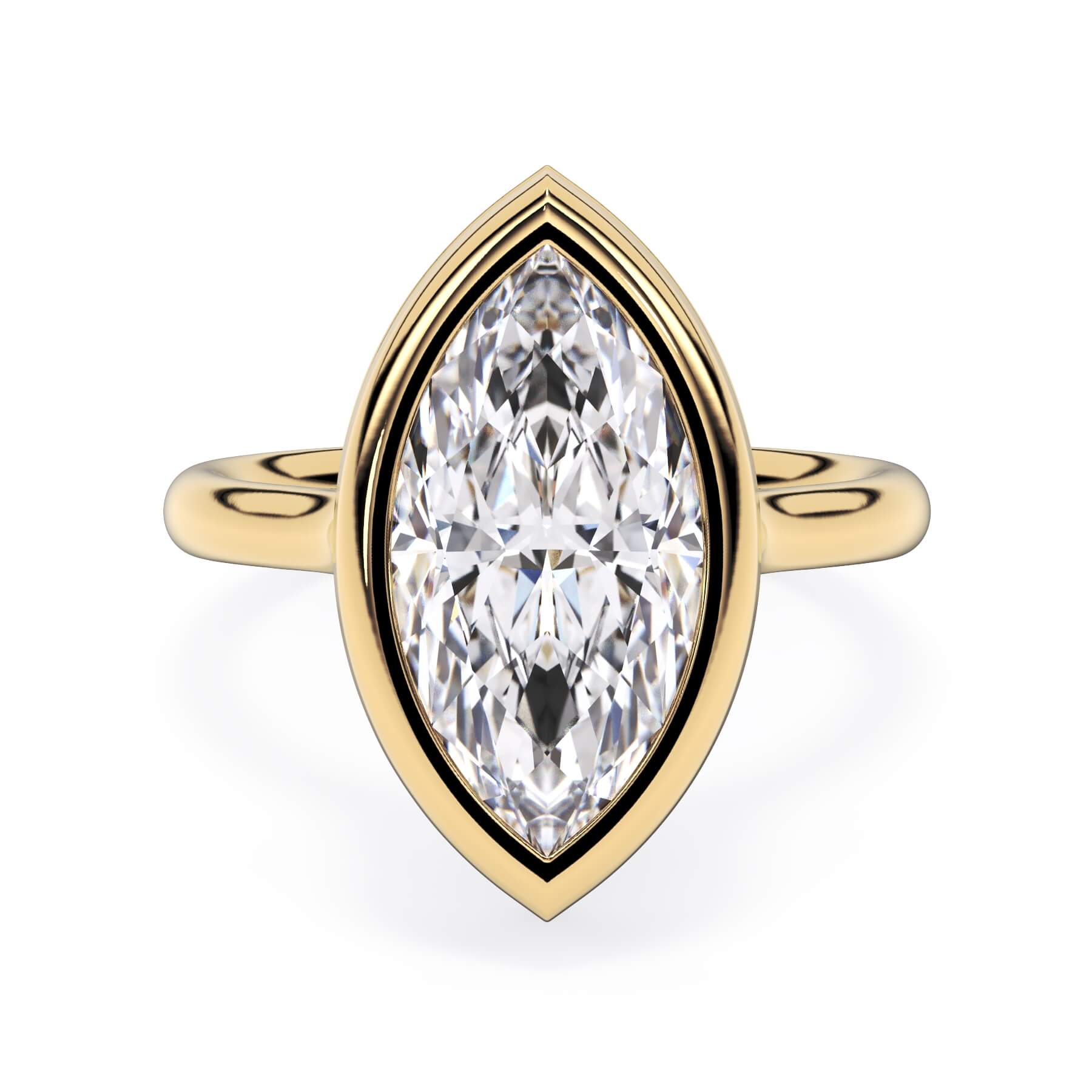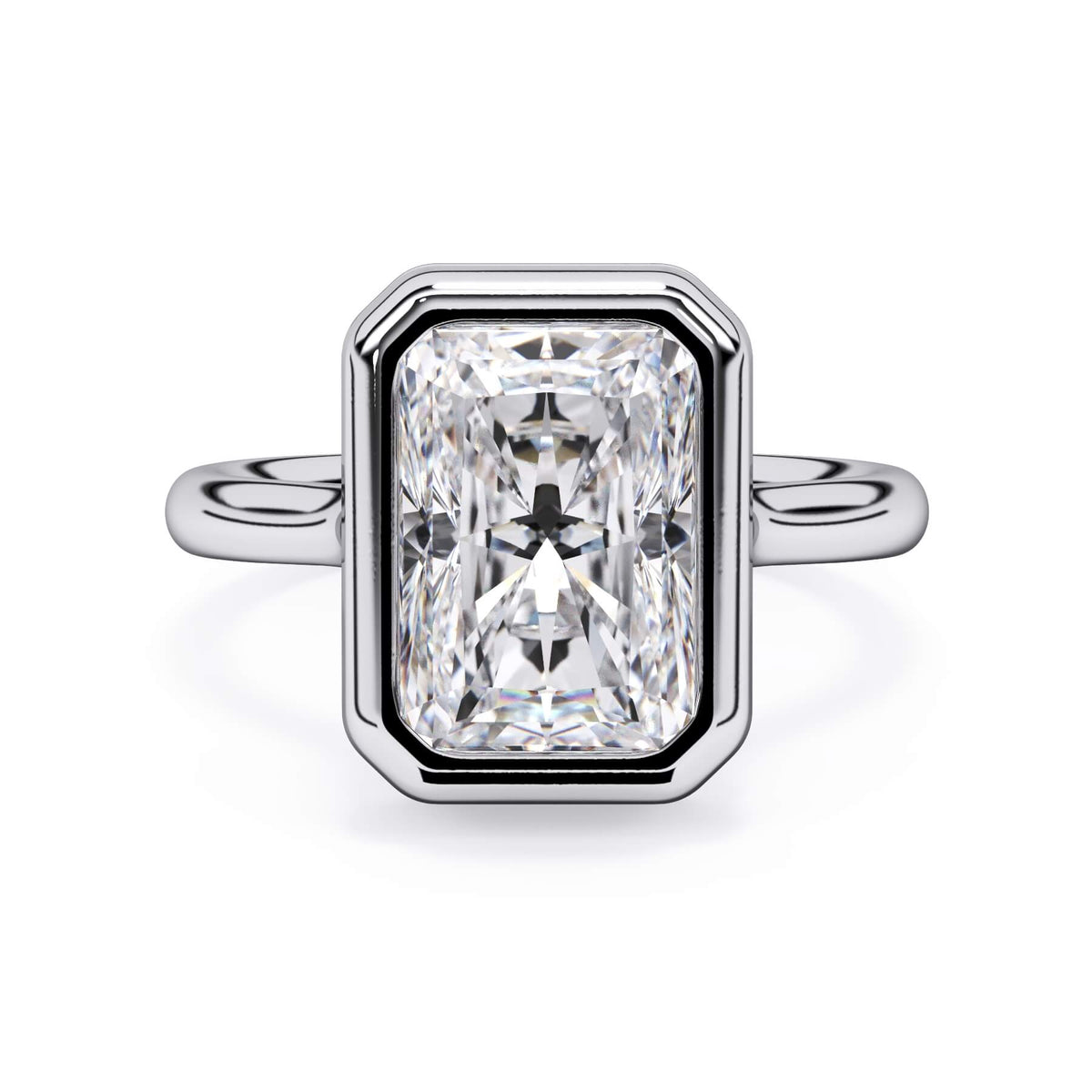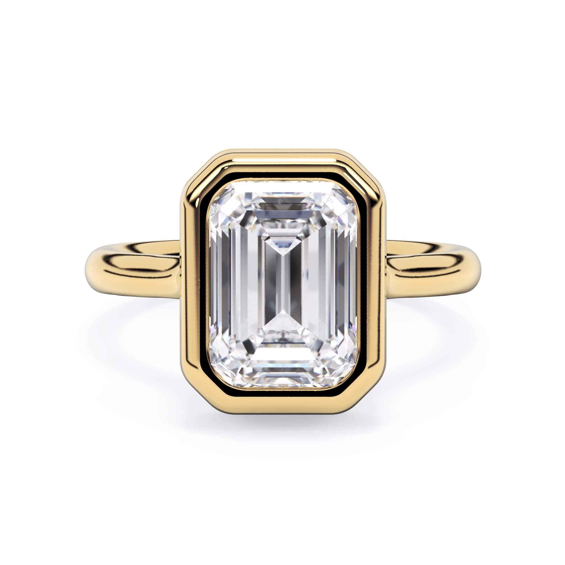 From the top down, this ring looks like a classic bezel set solitaire engagement ring, however the hidden halo underneath gives a fantastic flash and sparkle with diamonds. This Bezel with Underhalo Engagement Ring comes in your choice of 14kt Gold, 18kt Gold, or Platinum.