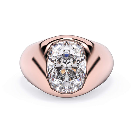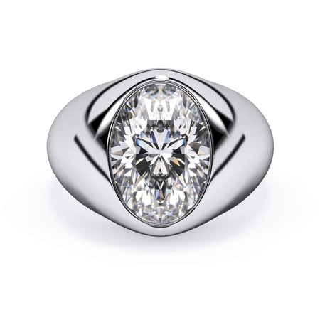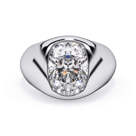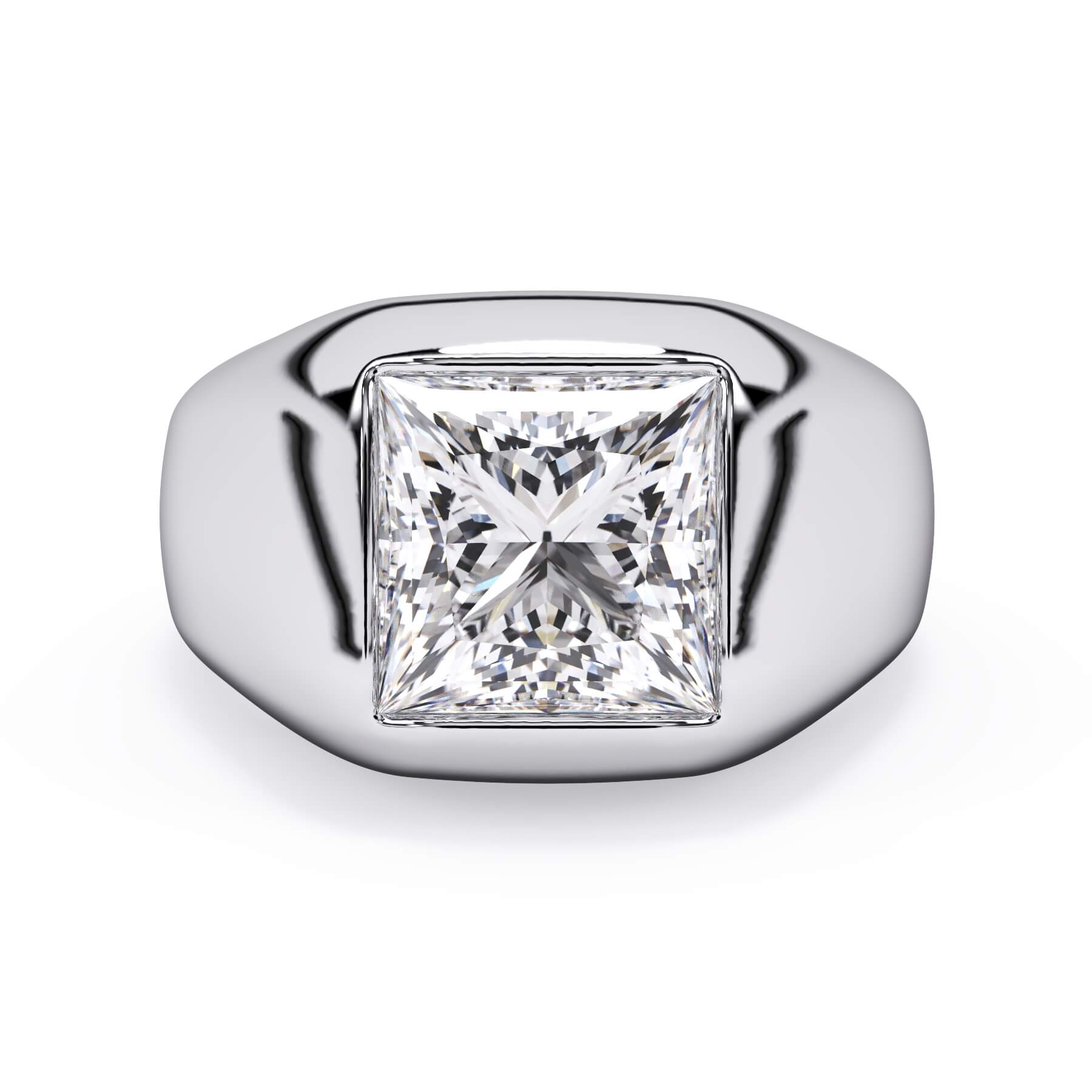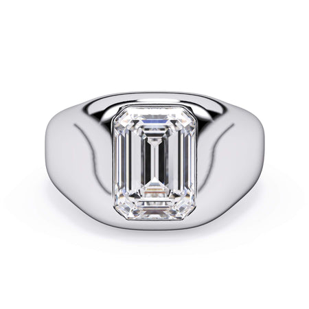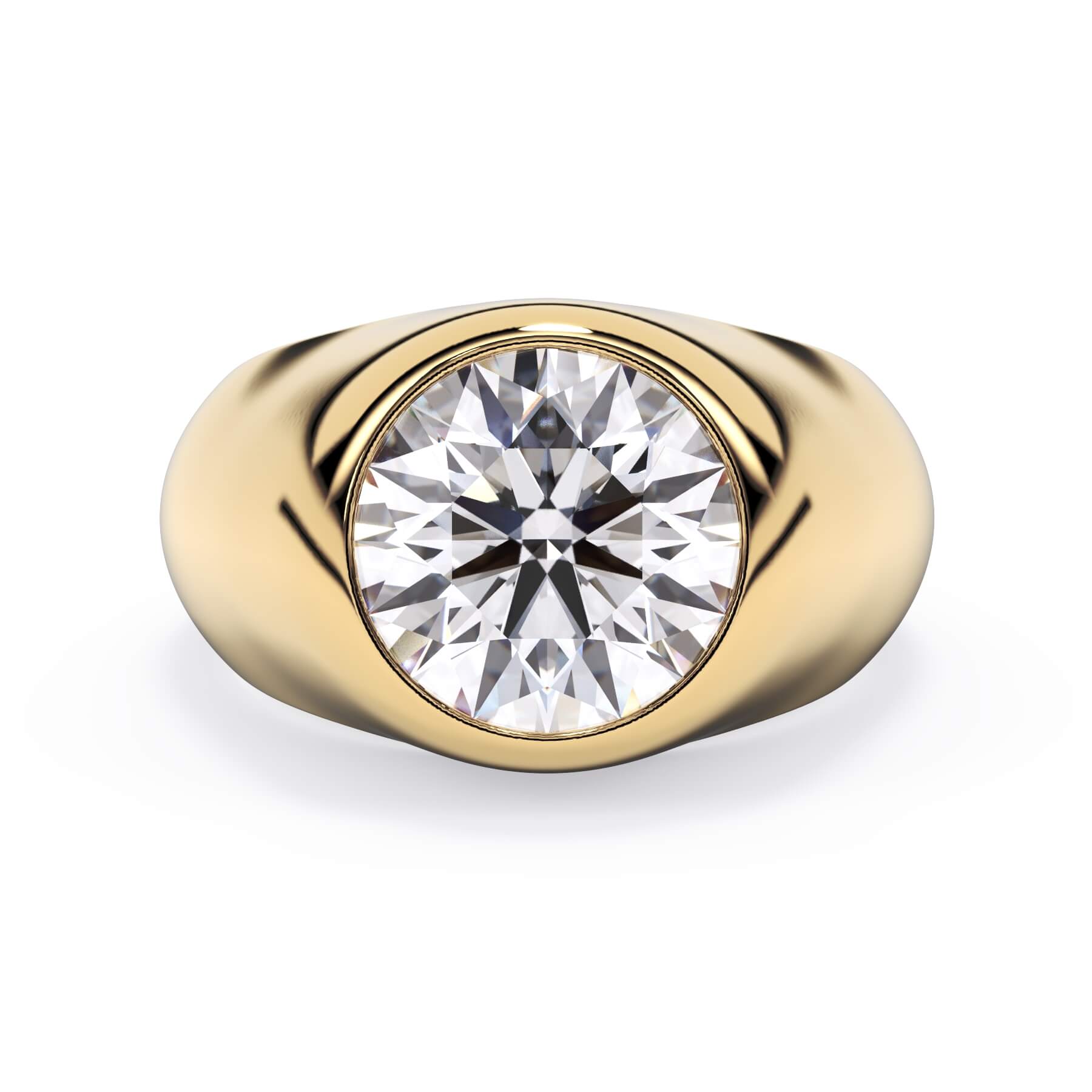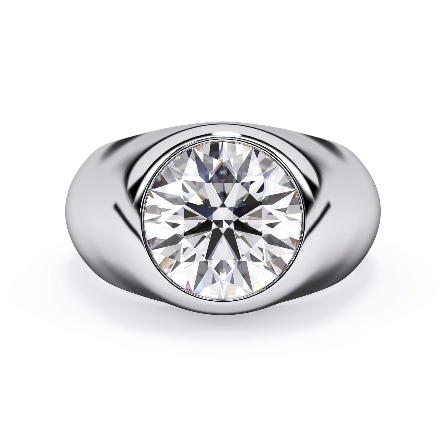 Modeled after cigar band aesthetics, this solitaire gives your center stone a sturdy and statement worthy home on a finger. The gallery style on the underside of this women's cigar band diamond engagement ring helps give it a lighter feel.