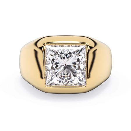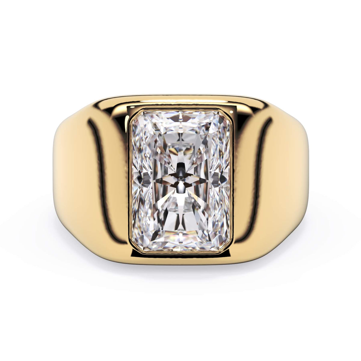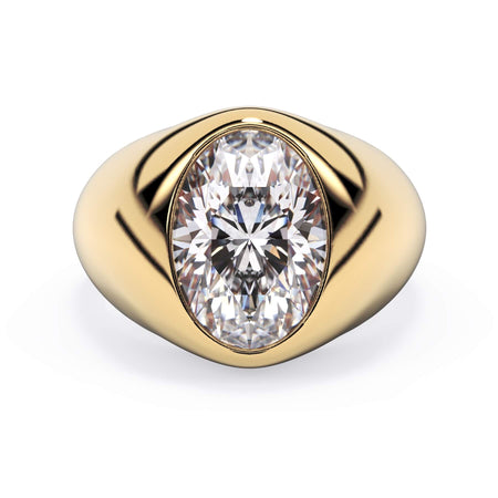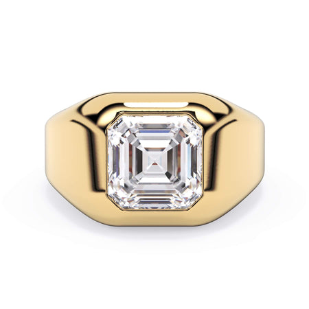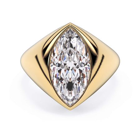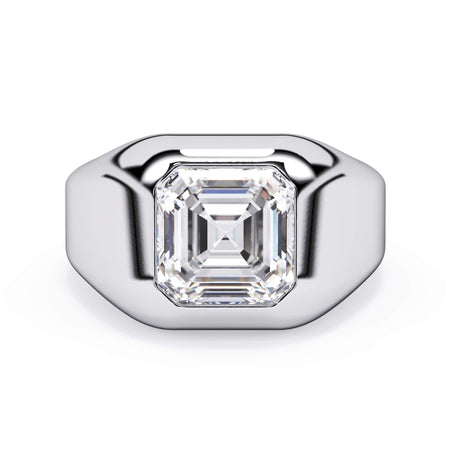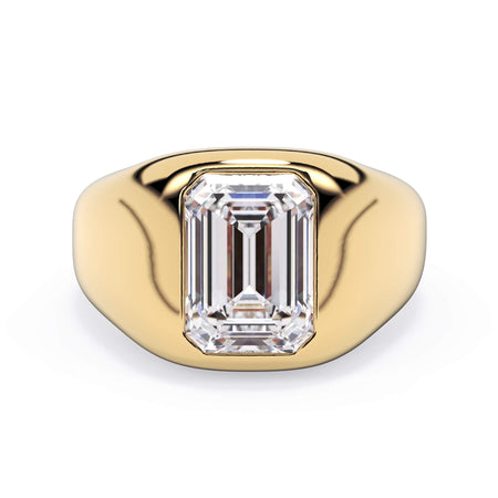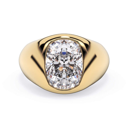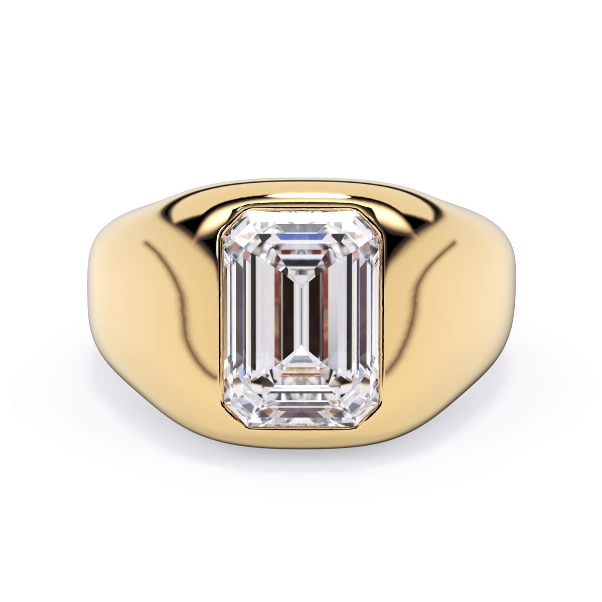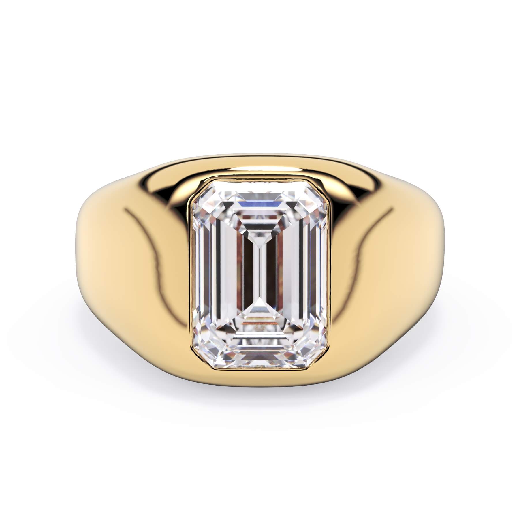 Modeled after cigar band aesthetics, this solitaire gives your center stone a sturdy and statement worthy home on a finger. The gallery style on the underside of this women's cigar band diamond engagement ring helps give it a lighter feel.