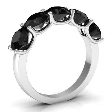 A sophisticated take on the classic five stone white diamond ring, this black diamond ring is a great addition to your collection. Featuring 5 AAA quality black diamonds in a U prong setting, this ring features 3.00cttw of black diamonds and measures about 5.5mm wide on the finger. A stunning wedding or anniversary gift.