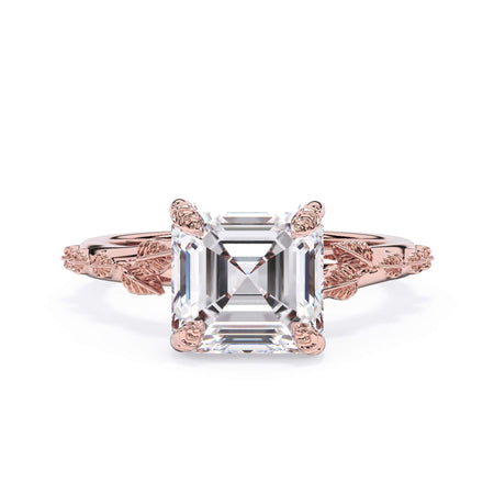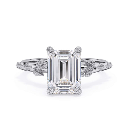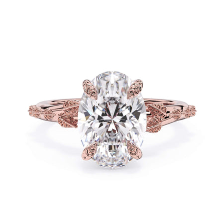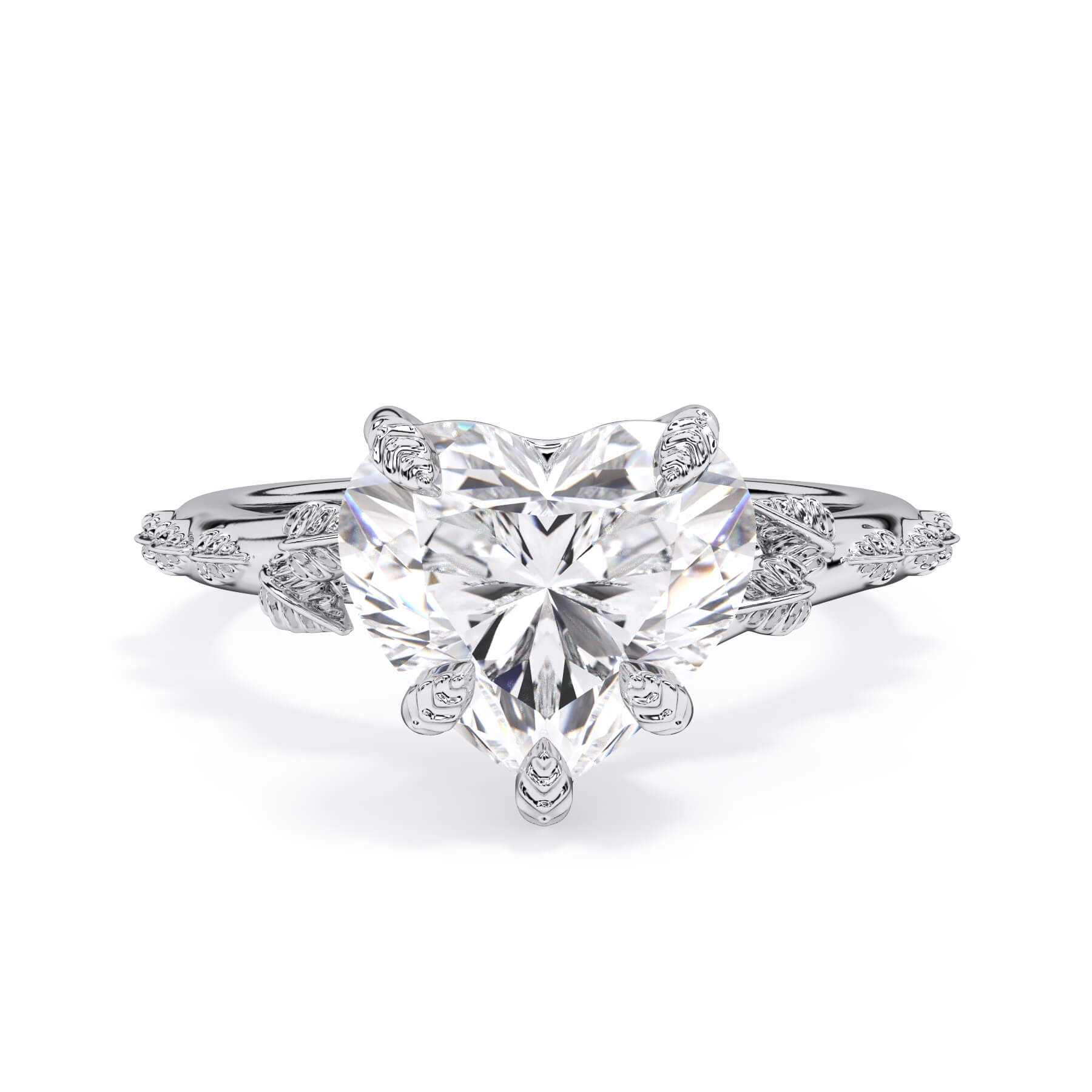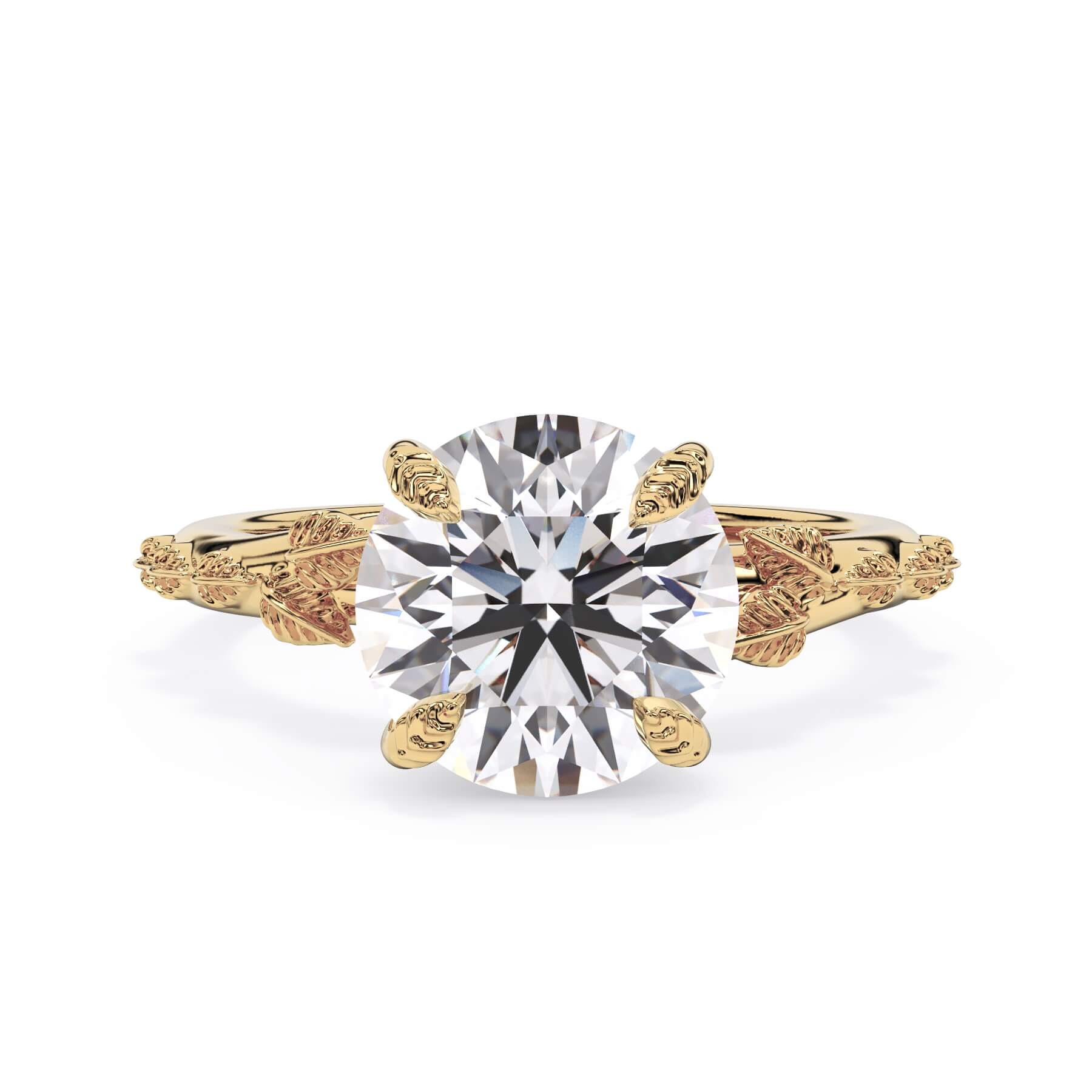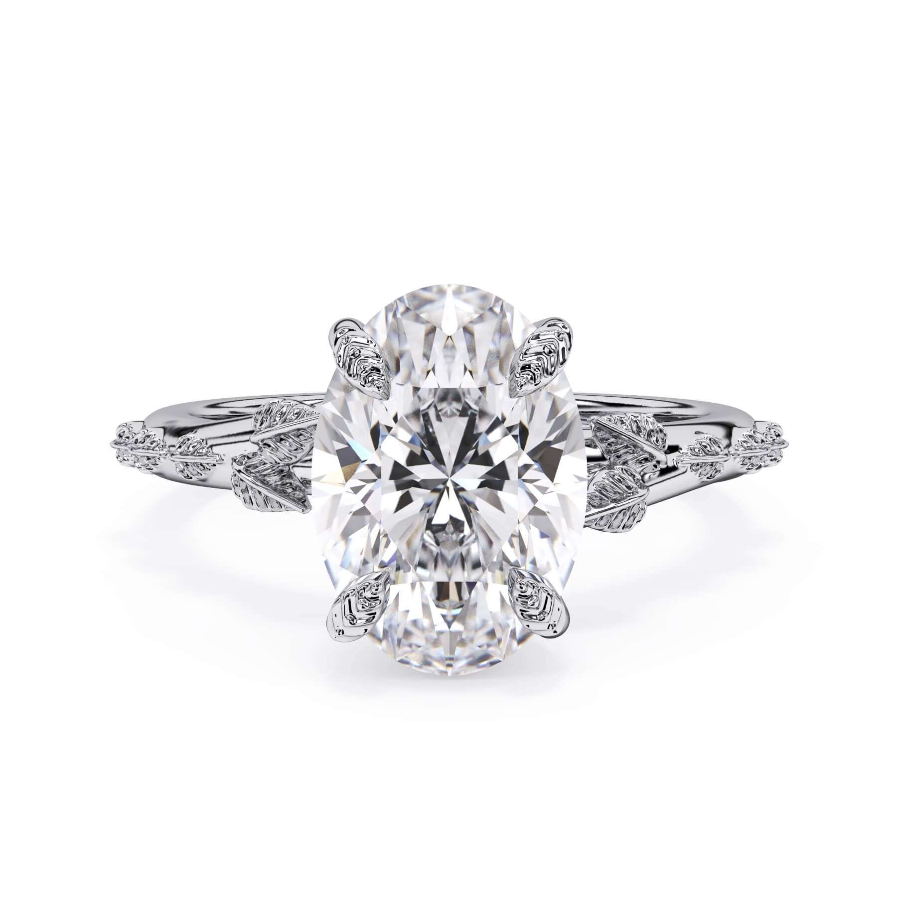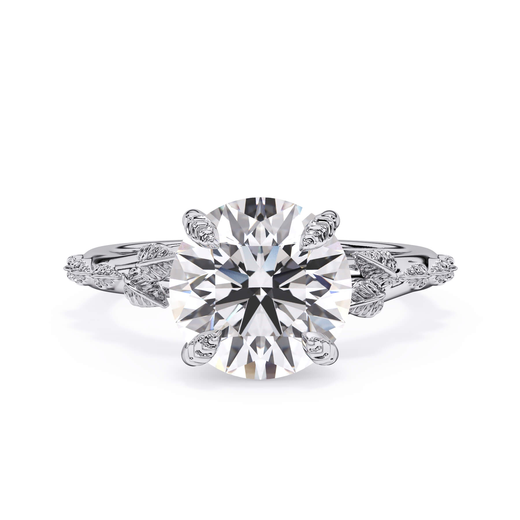 For a solitaire, this leaf engagement ring beautifully evokes a love of nature. The prongs feature the same organic leaf design that adorn the shank.