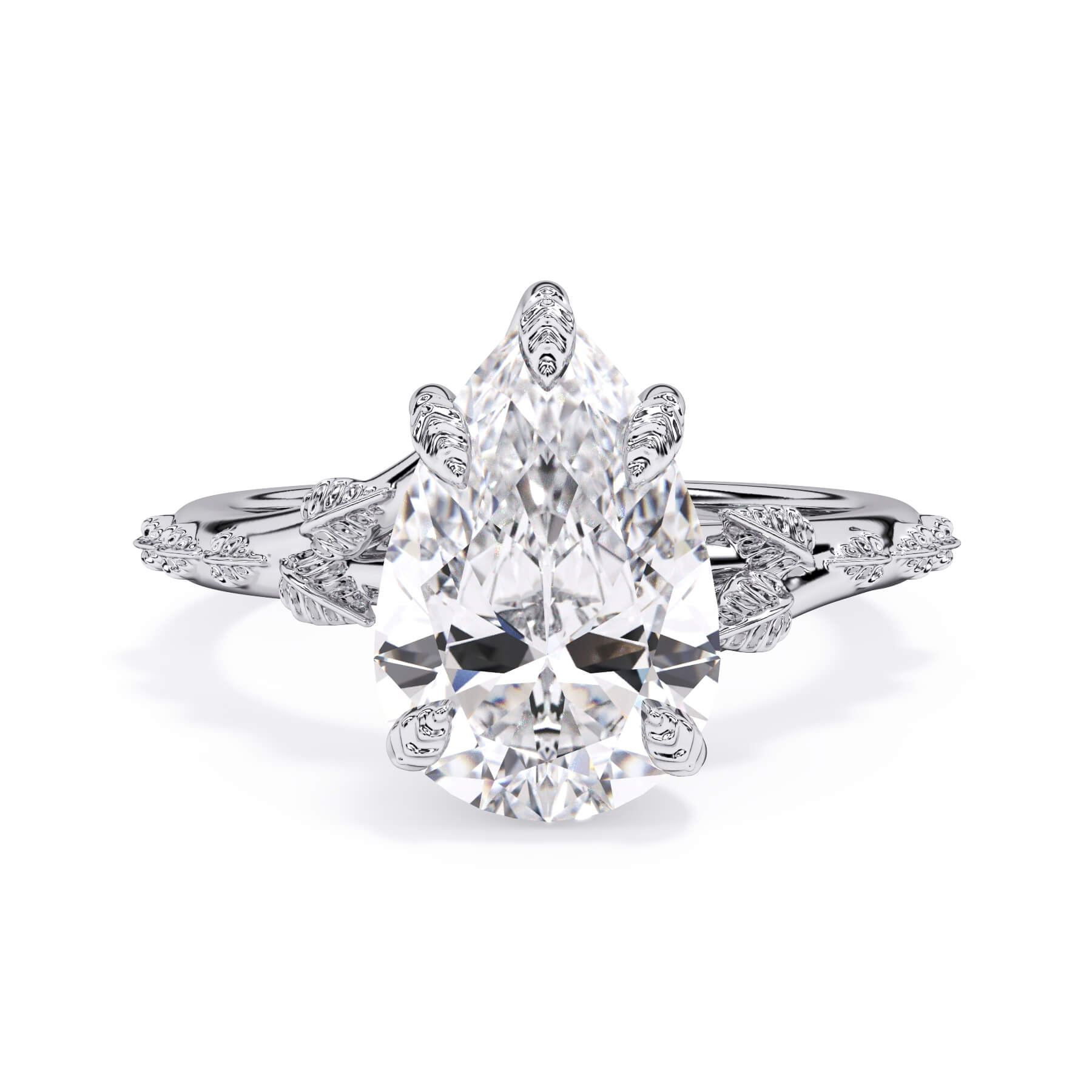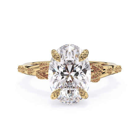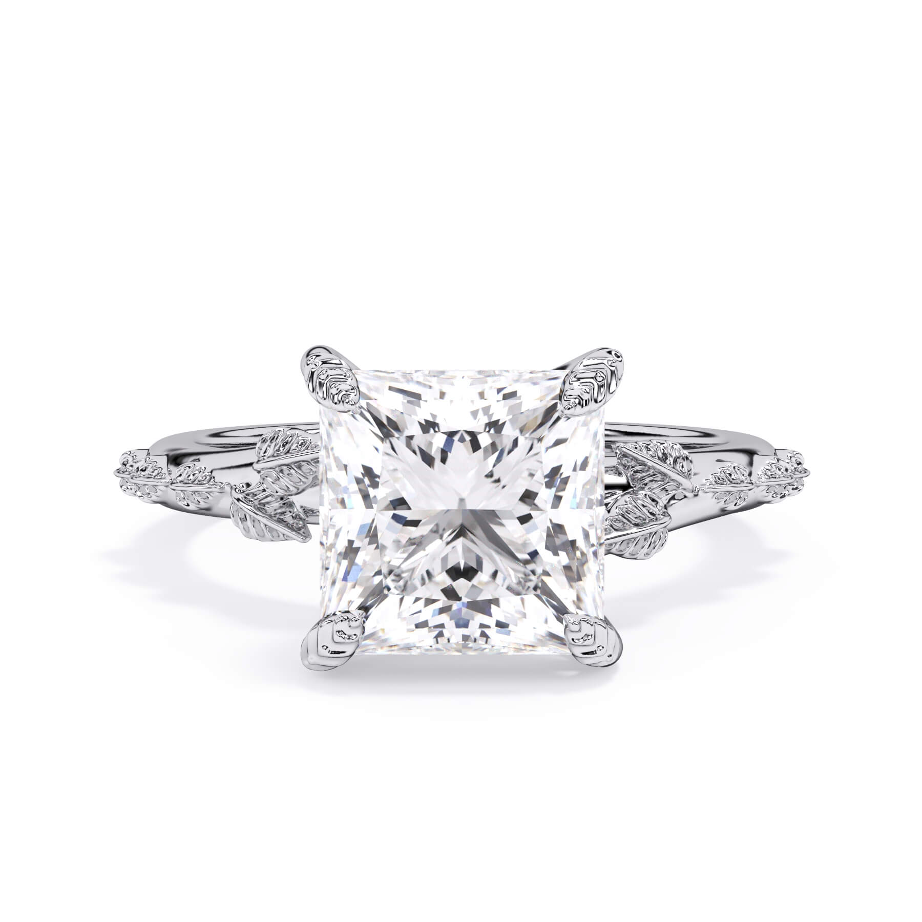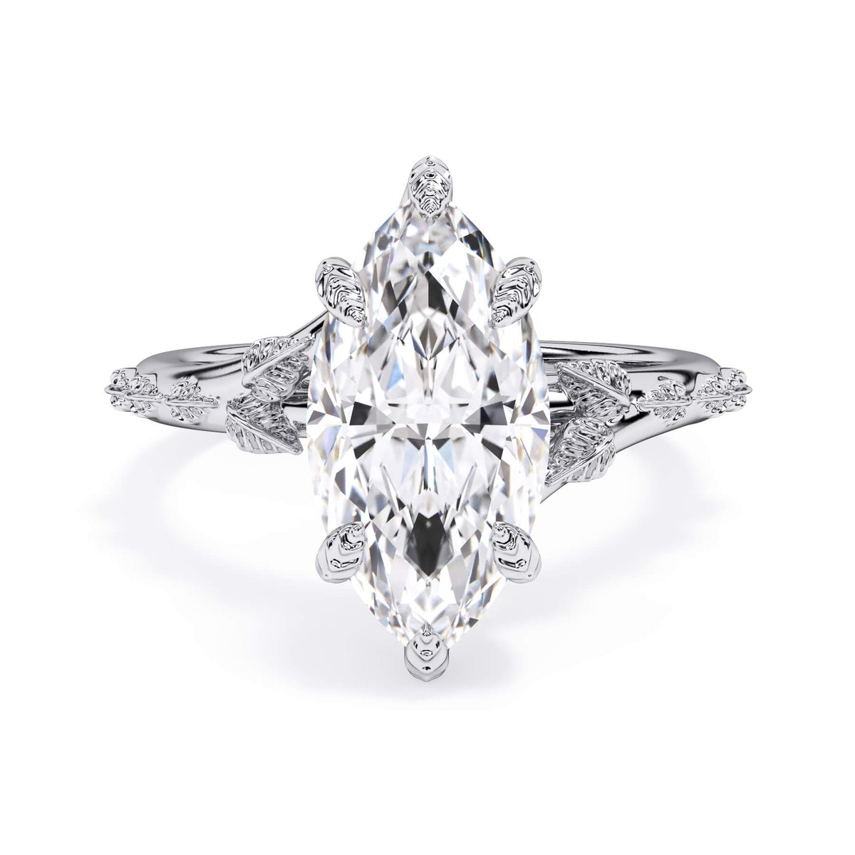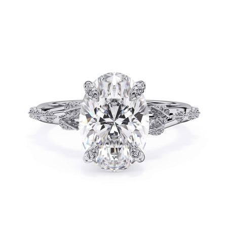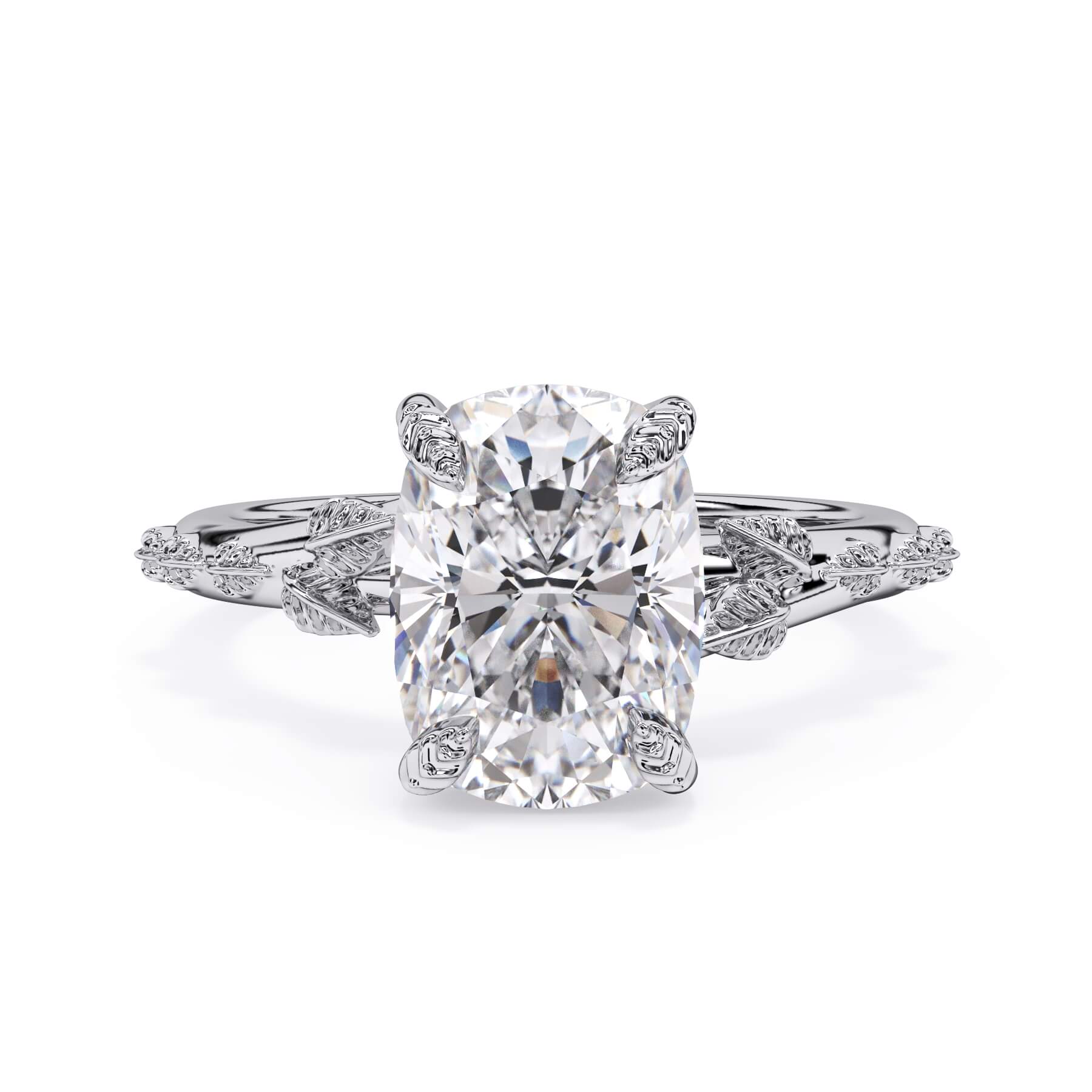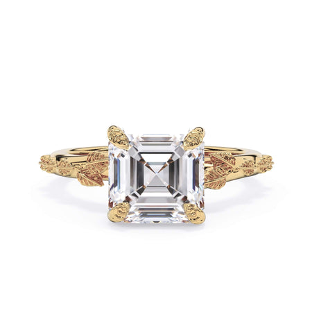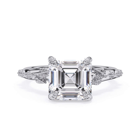 For a solitaire, this leaf engagement ring beautifully evokes a love of nature. The prongs feature the same organic leaf design that adorn the shank.