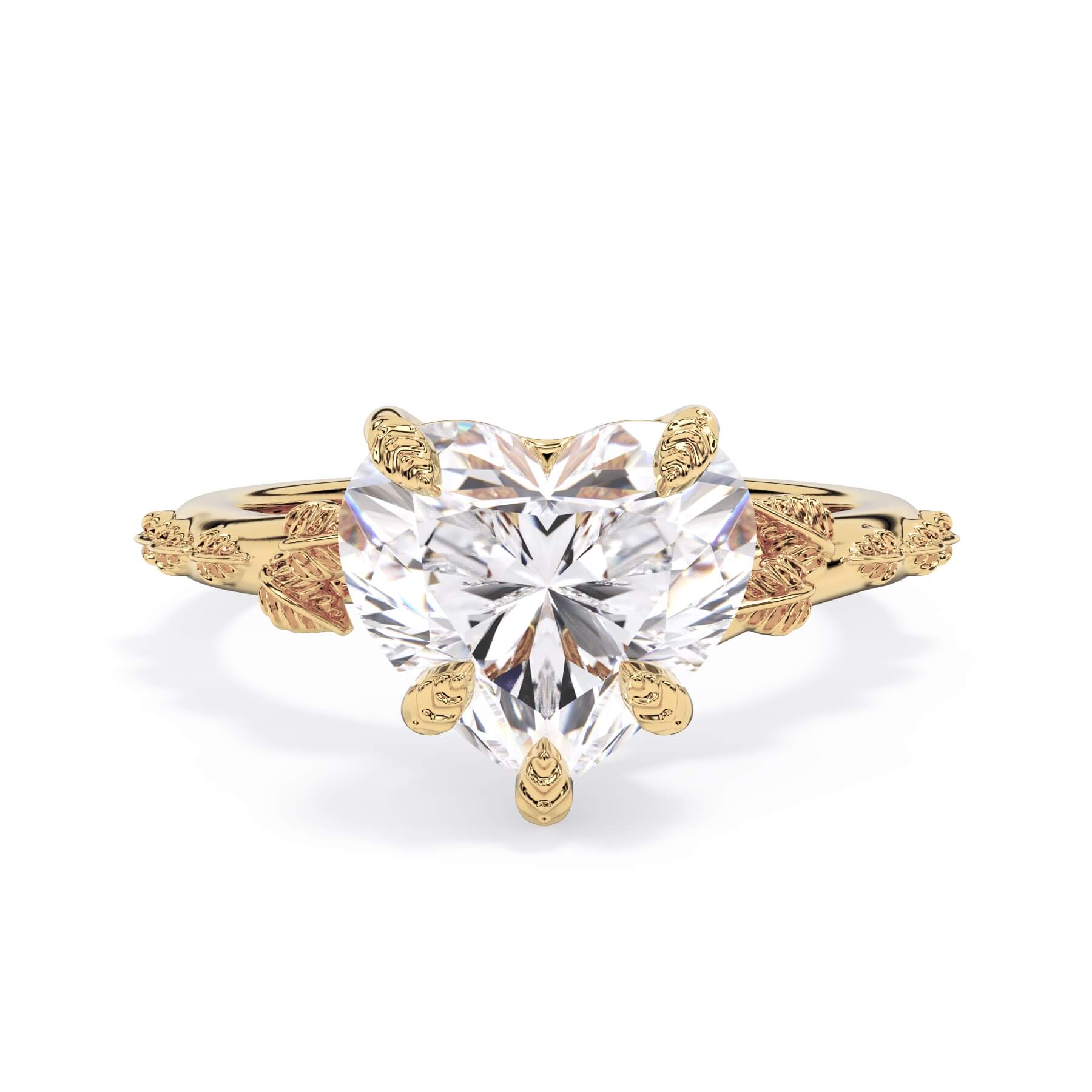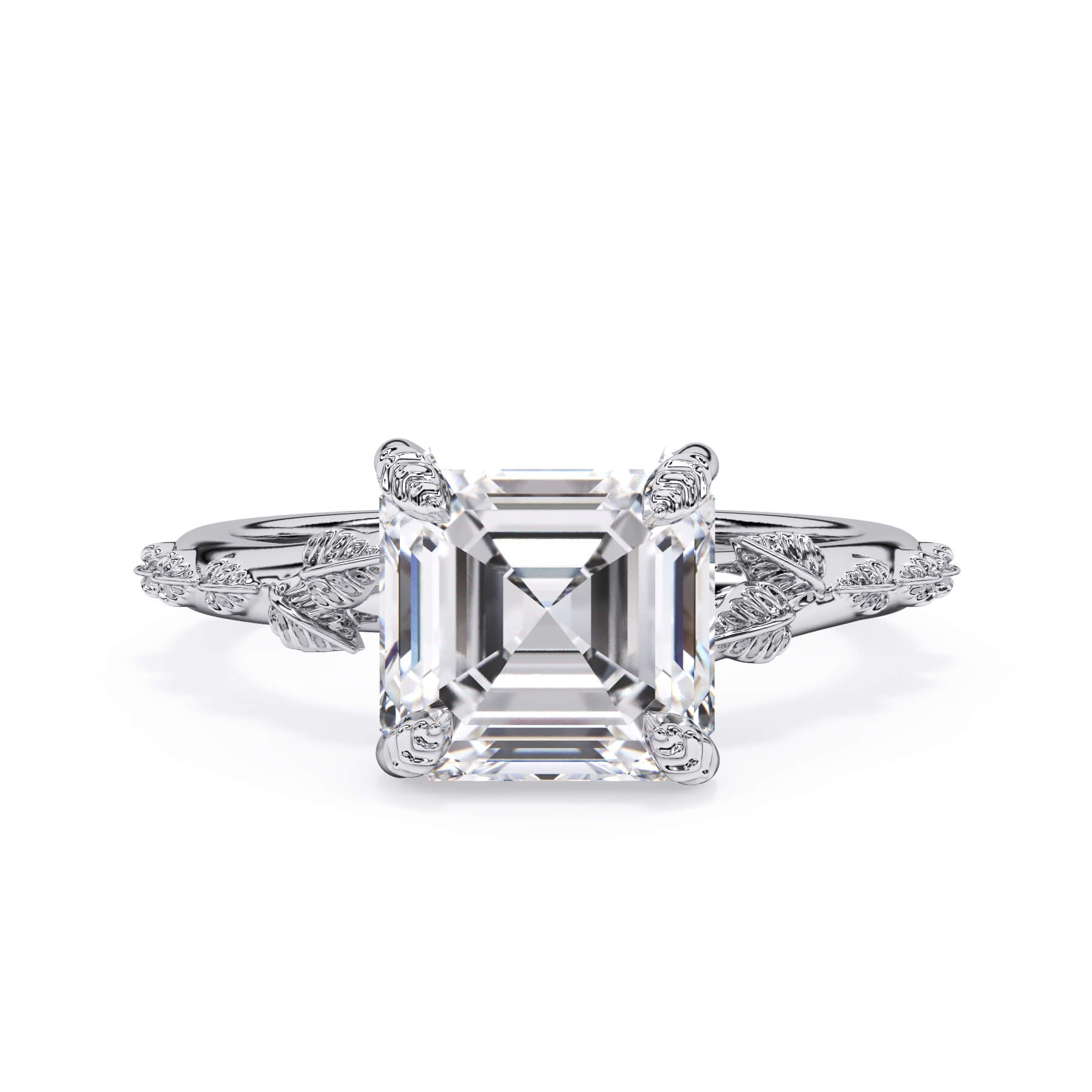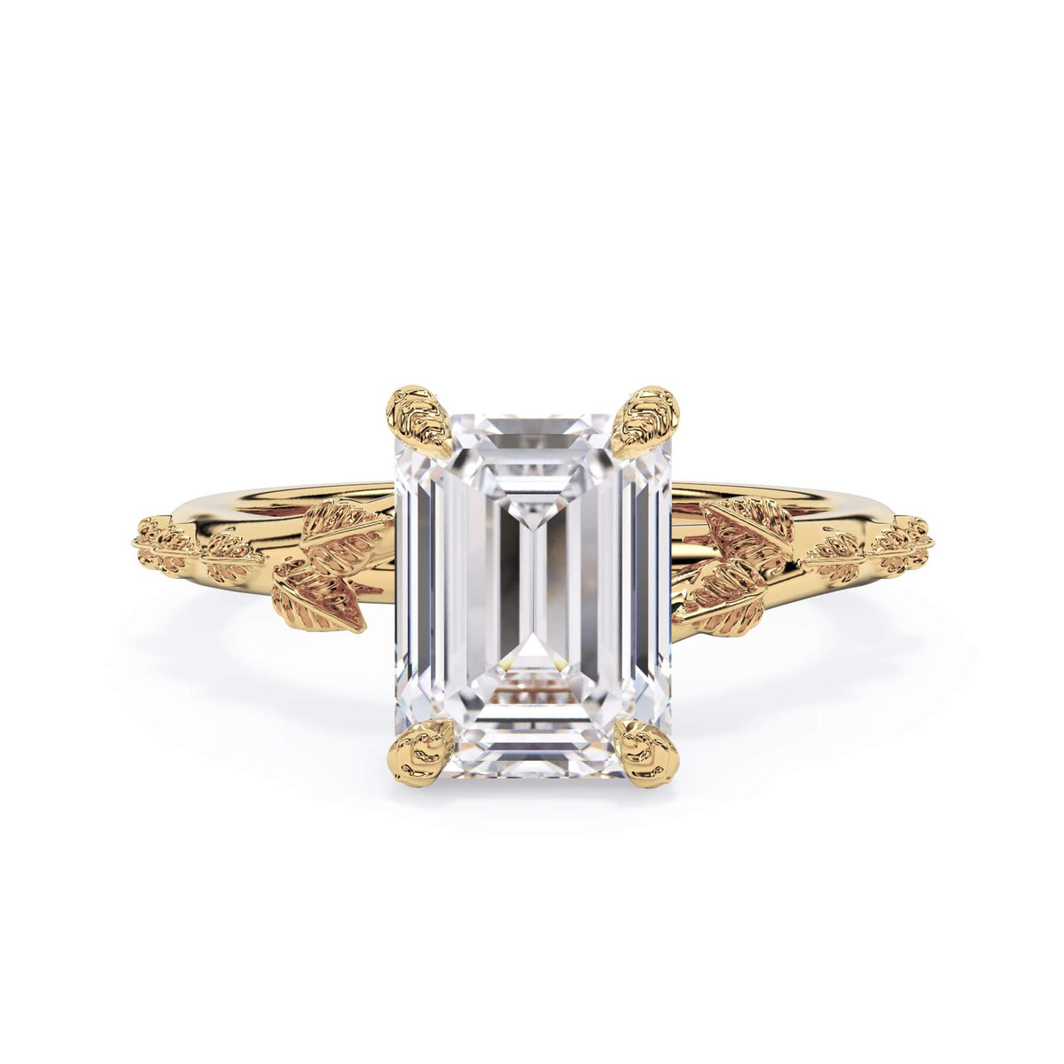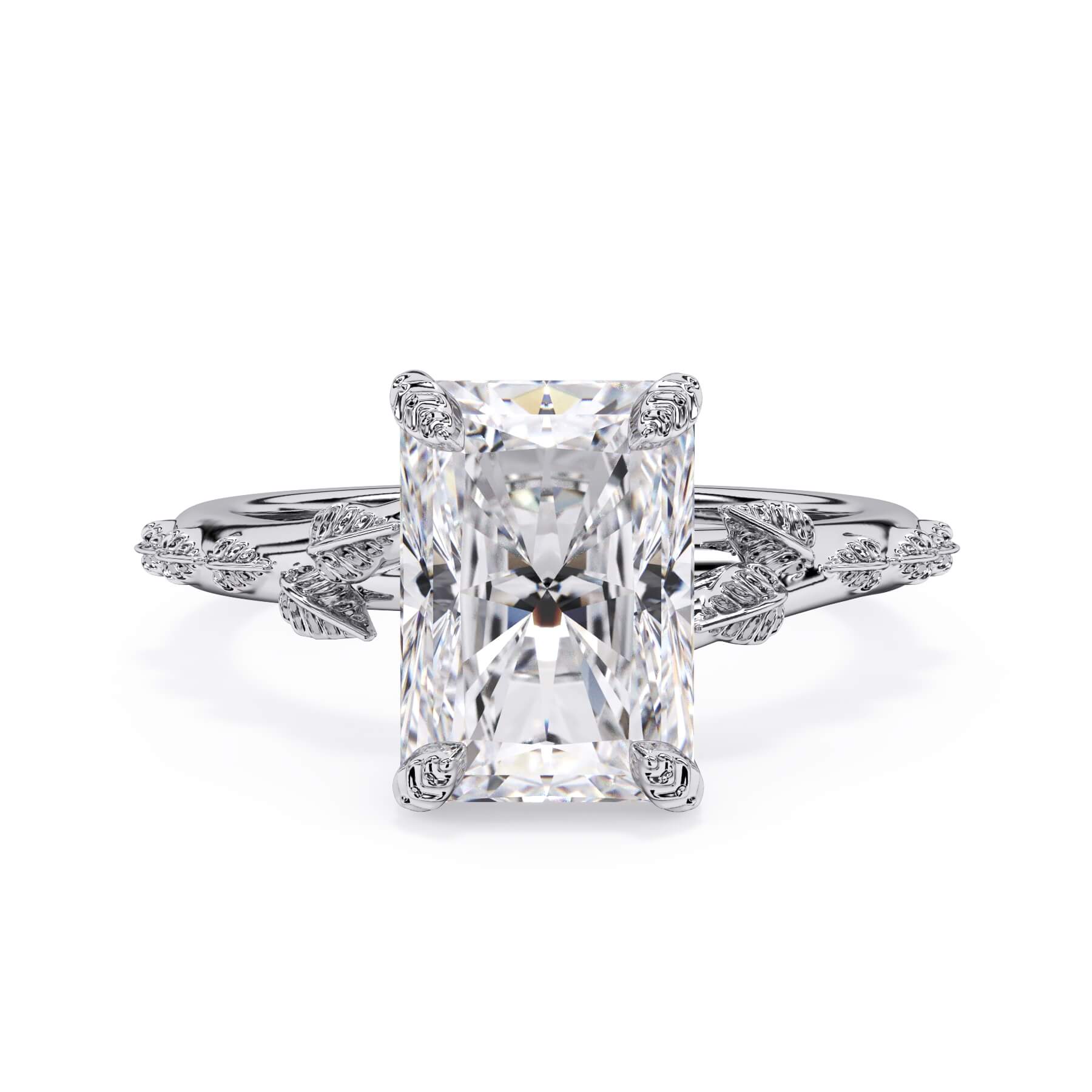 For a solitaire, this leaf engagement ring beautifully evokes a love of nature. The prongs feature the same organic leaf design that adorn the shank.