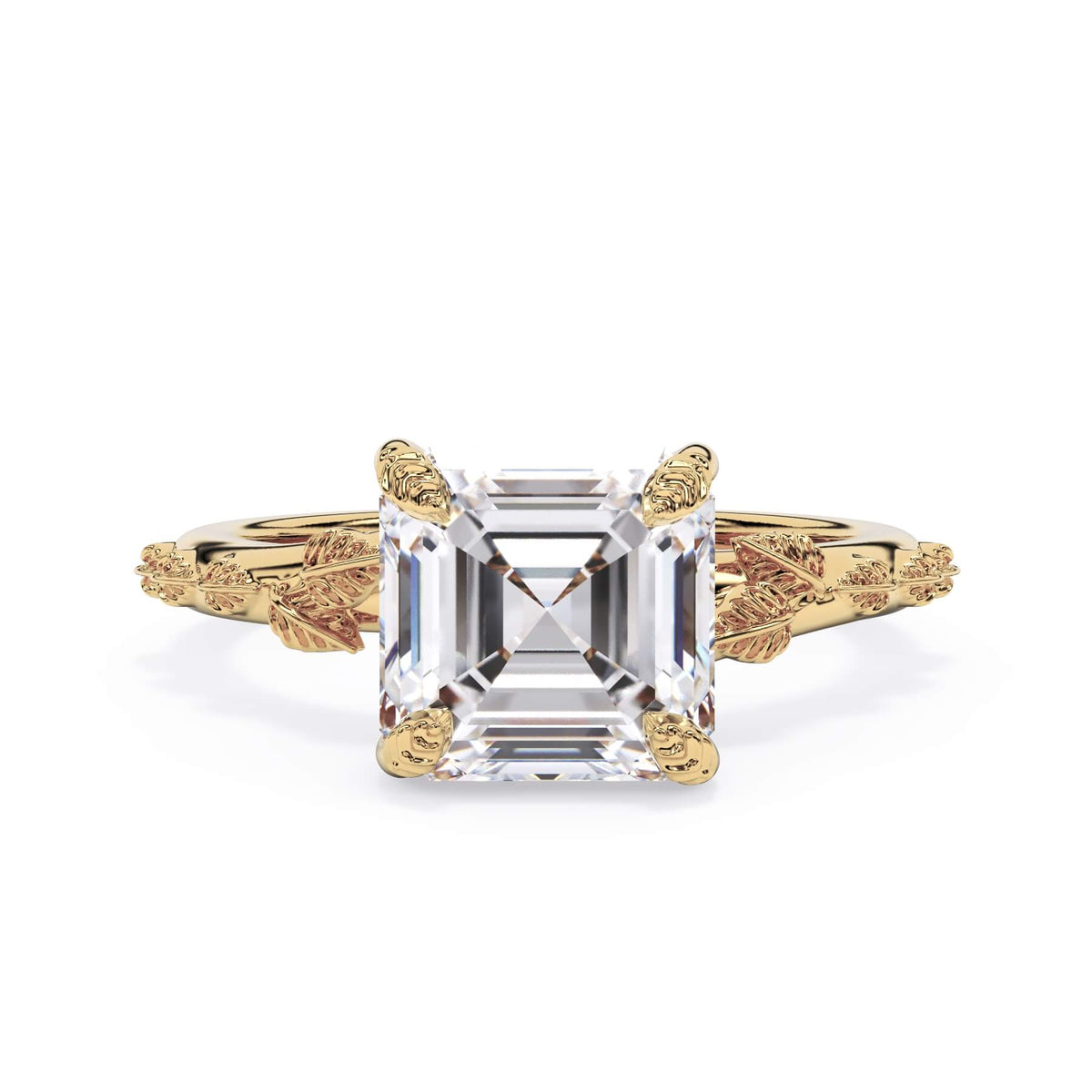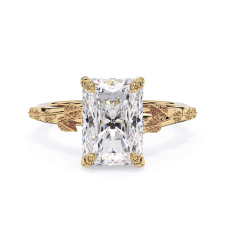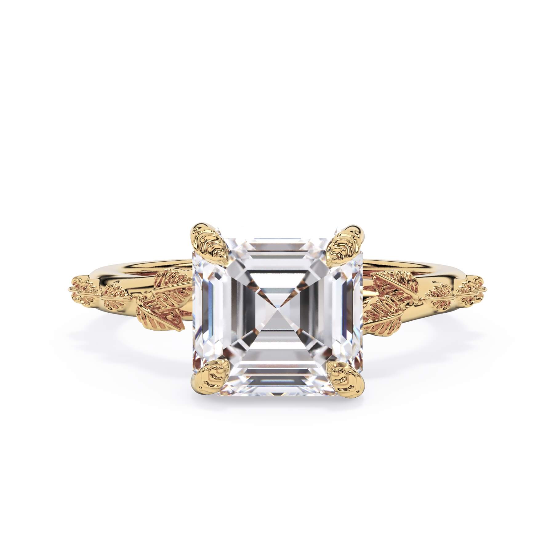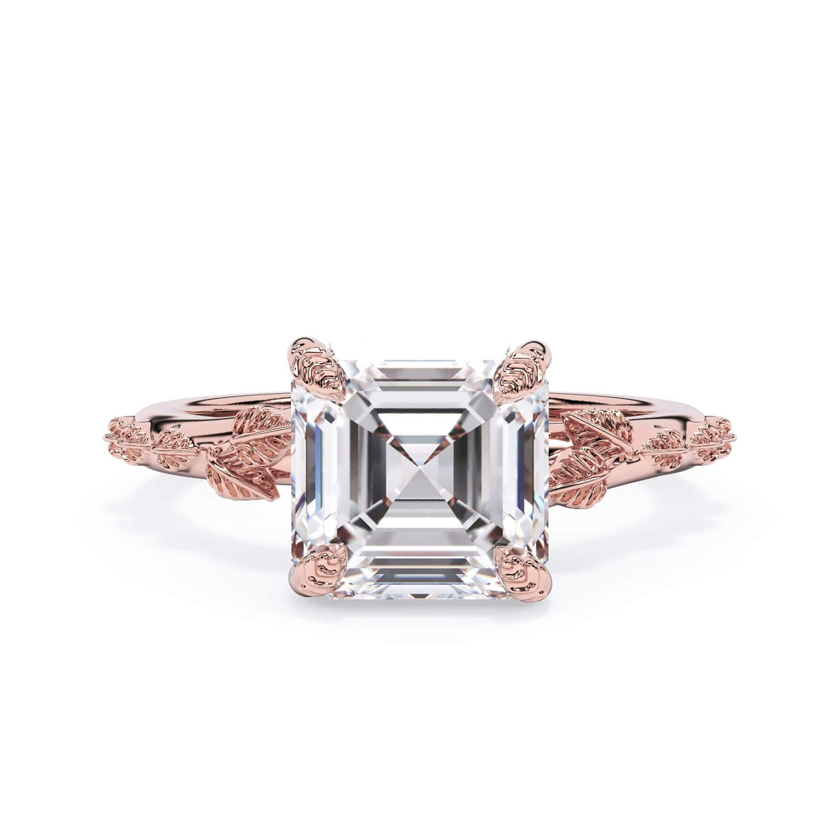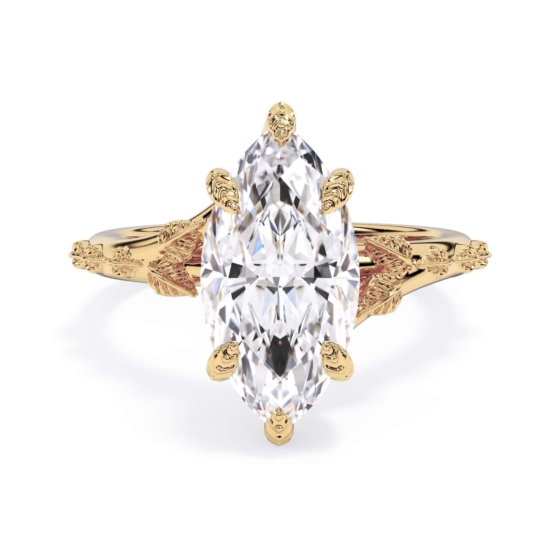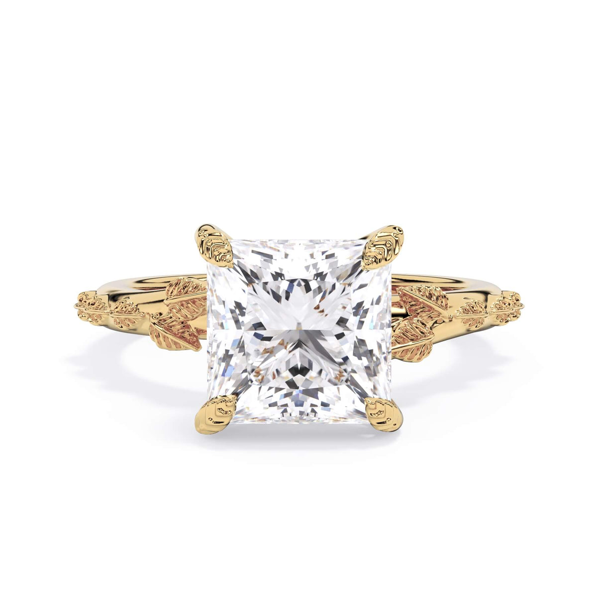 For a solitaire, this leaf engagement ring beautifully evokes a love of nature. The prongs feature the same organic leaf design that adorn the shank.