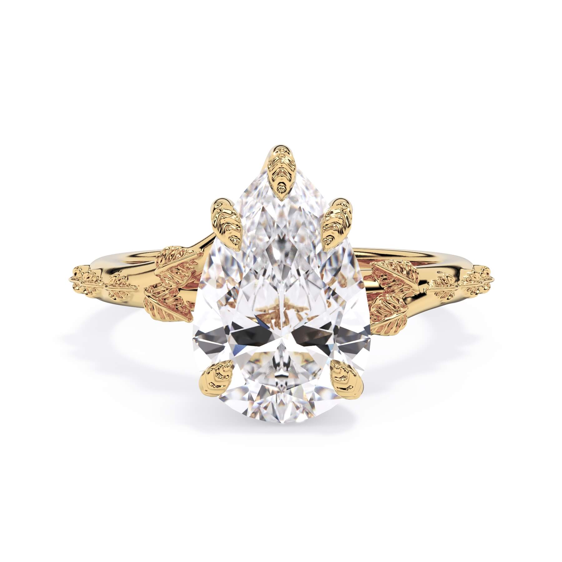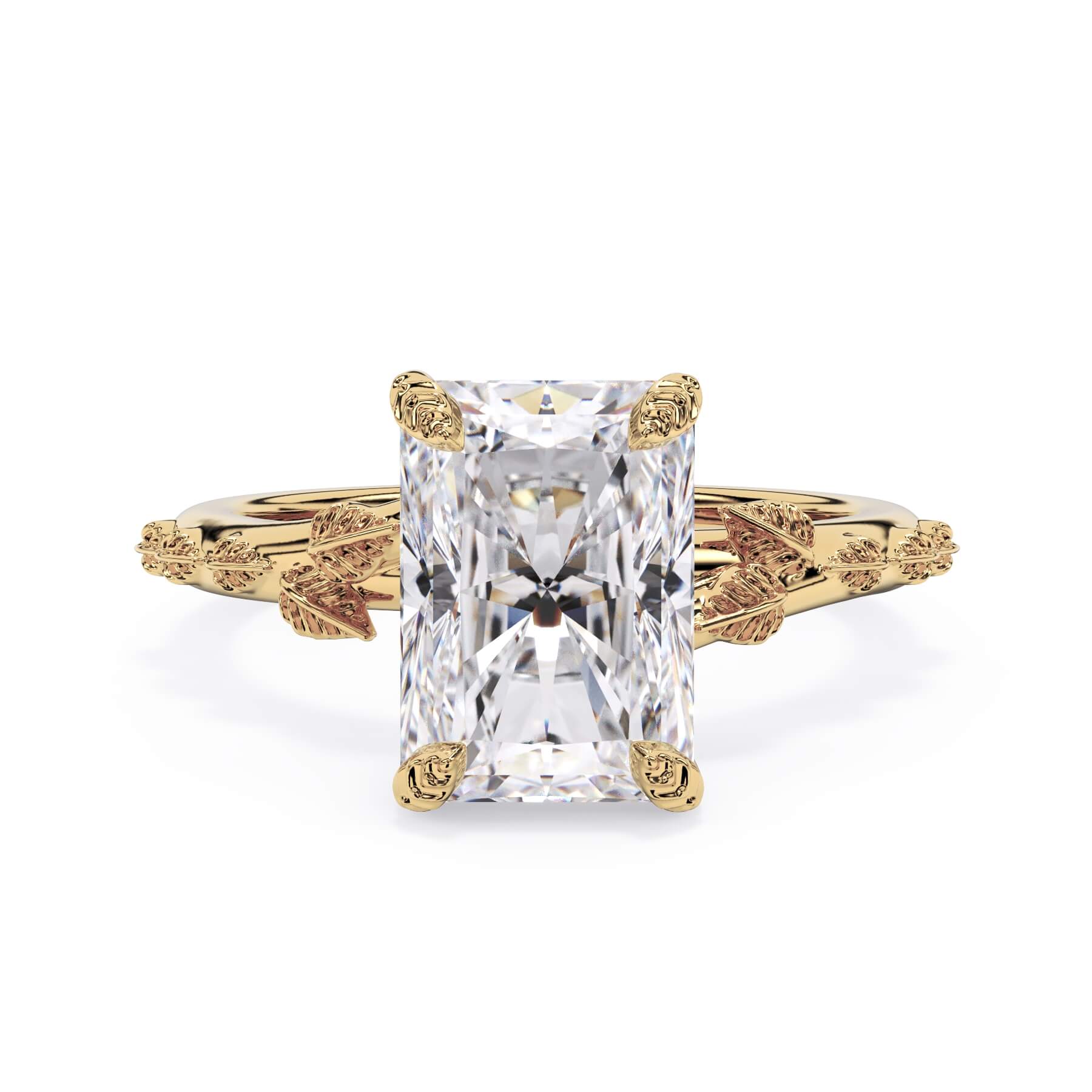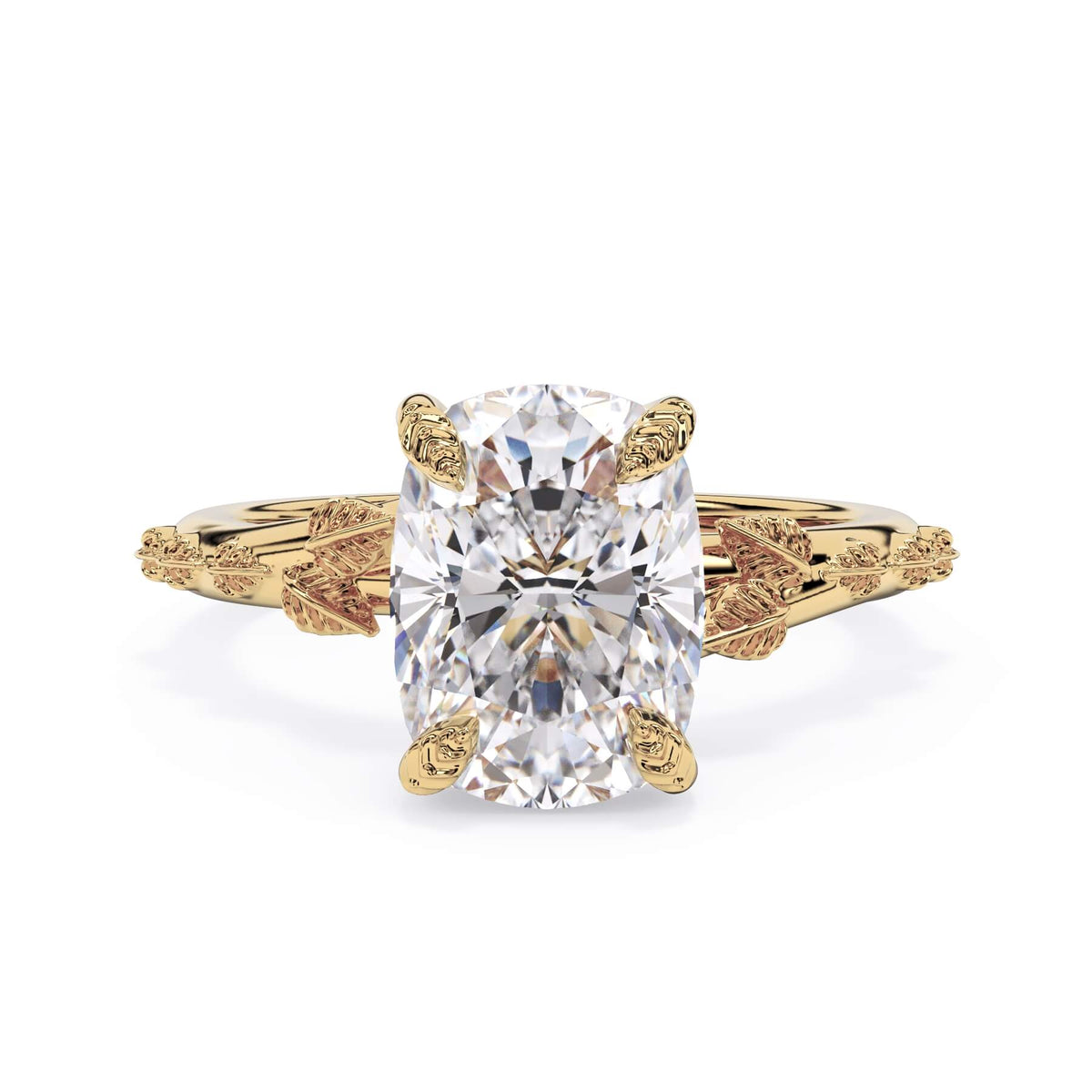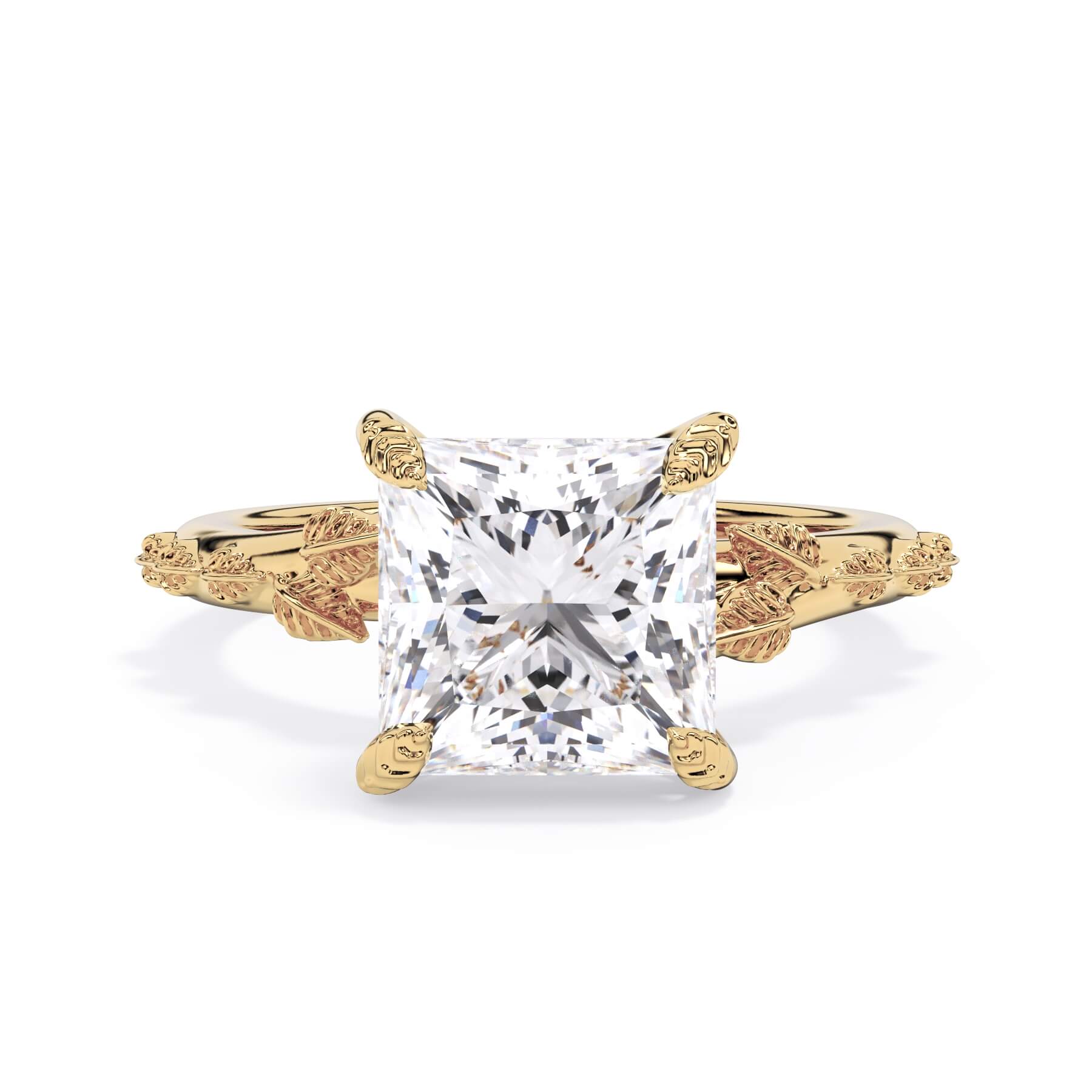 For a solitaire, this leaf engagement ring beautifully evokes a love of nature. The prongs feature the same organic leaf design that adorn the shank.