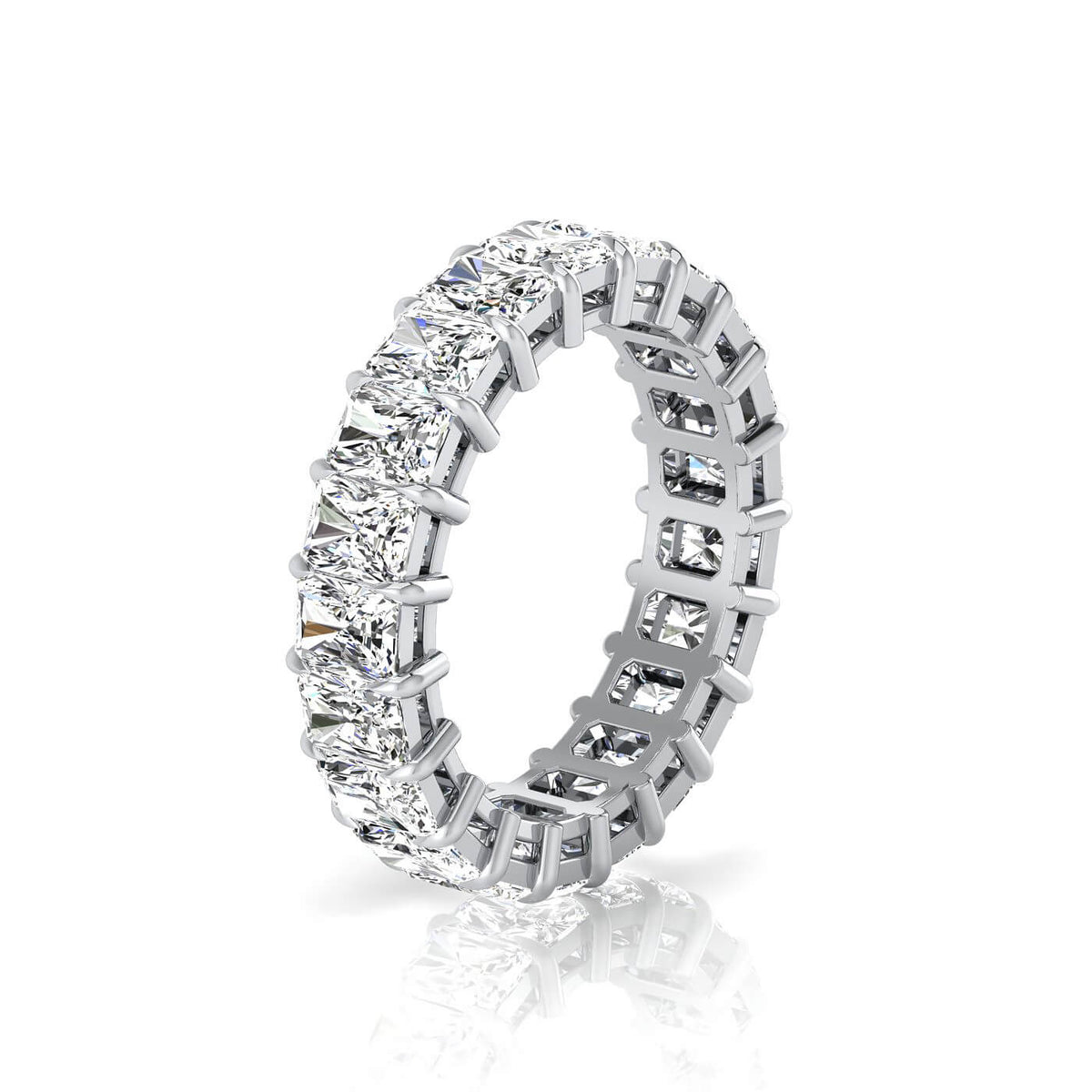 Our Radiant Cut Lab Grown Diamond Eternity Band - 4.41cttw features approximately approximately 21 lab grown diamonds that were hand-selected by one of our staff GIA Graduate Gemologists. The ring will be cast in the size and precious metal of your choice, and set by our expert craftsmen here in Los Angeles. The ring has an approximate finished width of 4.5mm.