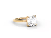 This low profile, two-tone basket setting solitaire engagement ring provides a classic solitaire look, with the added pop of color play from the two-tone setting. Of course, the ring is available in matching metals as well, simply choose the ring of your choice. The 1.7mm wide shank on the ring will pair beautifully with almost every wedding band.